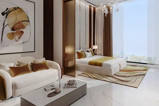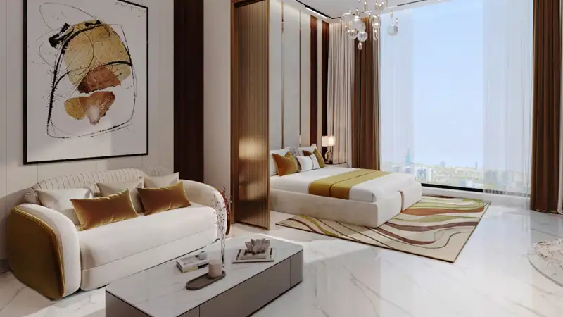 - Convertible fully furnished studios, 1, 2 & 3-bedroom apartments featuring exclusive smart flex layouts in high-end design with multipurpose spaces.