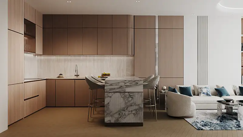 The well-designed interiors which are meant to inspire the new world, new-age residences as well as the modern society. The conversation between marble and travertine surfaces and the oak wood, the antique brass detail and fluted white wood is reflected not only through the polish of glass surfaces but the lights and calmness magnified by the use of glass combined with these substances. Intelligent technology is concealed in the accessories of smart-homes behind elegant beauty, and eco-friendly high quality materials with a long life-span testify to efficiency, responsibility and sustainability. Whether it’s about the studios or the largest bedrooms, every plan is carefully assembled in an attempt to create a space that is not only poetically moving, but as objectively precise.