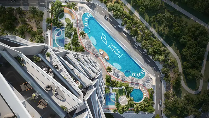 Binghatti Circle at JVC is a premium class high-rise residential Apex rising over 60-storey, developed by the renowned Binghatti Developers with exclusive studios, 1, 2 & 3–bedroom apartments, lined with some selected office and retail at service. Presenting the peak of wholeness setting some new demarcations to the horizon with virtuous statement, a single unbroken contour, a wholesome concept, an object that does not only emerge but engulfs. Being the tallest tower to be built in Jumeirah Village Circle, this 2B + G + 4P + 58-floor plus 3 mechanicals + 3 storey + roof declaration tower translates the Binghatti award-winning design DNA into an anthem of elevation and calm. Planned to be energy efficient, finished with enduringly luxurious materials, and a vision that will make it almost pass as a world of its own.