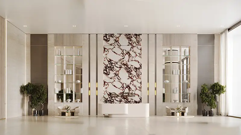 - Luxury Interiors, crafted with premium materials such as marble, travertine, oak wood, and antique brass to create an elegant and timeless appeal.